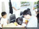 2001年9月に行った対局会の様子です。この日は子どもさんに大好評で、中将棋の対局指導や子ども同士での対局などが行われました。 2002年6月の対局会で将棋道場での開催も10回近くになりましたが、ずいぶん中将棋を知ってくれている子どもさんが増えてきたと実感しています。中にはルールも大体の所まで覚えてきている人もいて、会を重ねるごとに認知されるようになって来ました。